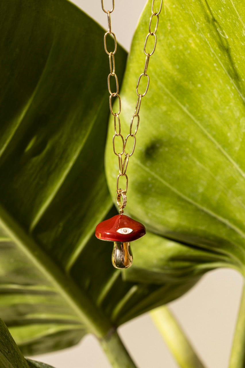Enchanted Gold & Diamond Red Mushroom Necklace