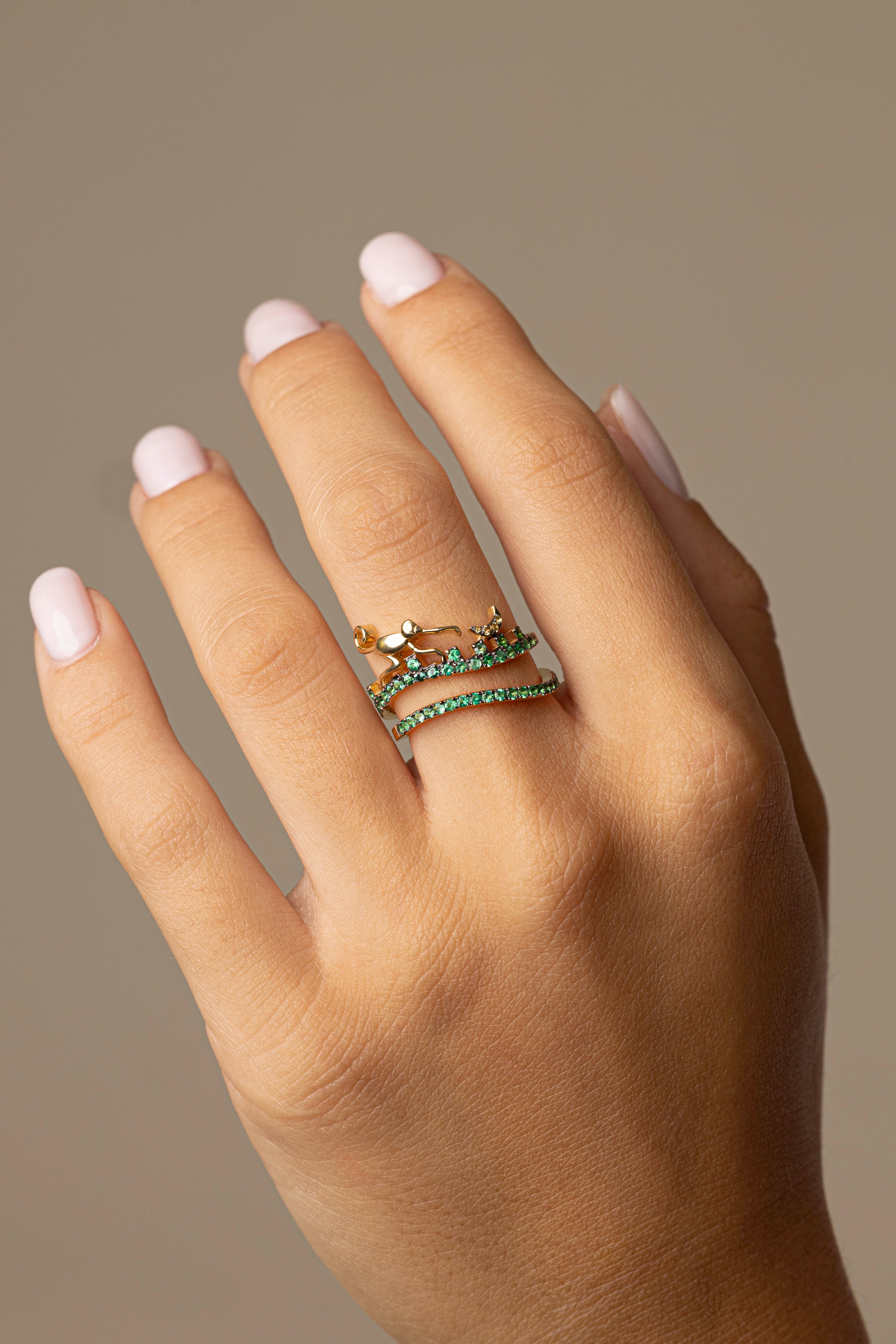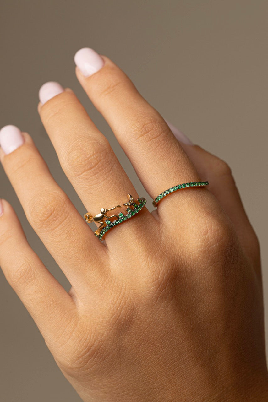 Emerald Monkey & Banana Double Rings