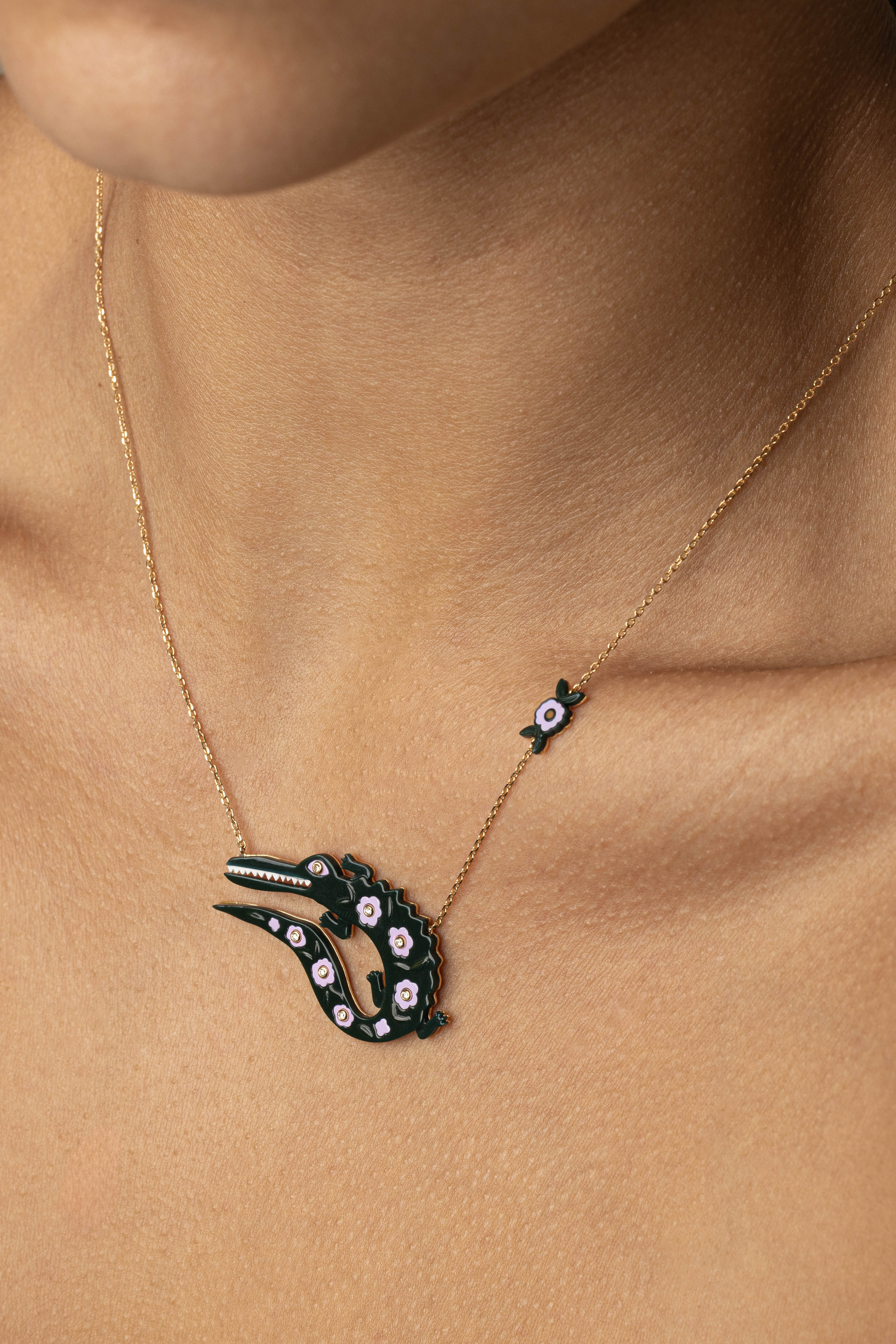 White Diamond Crocobloom Necklace
