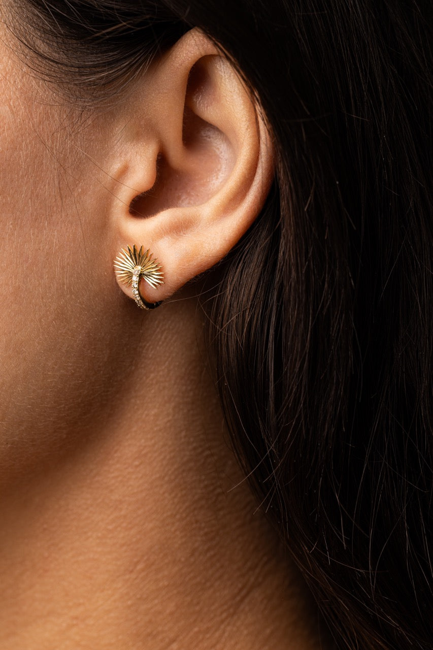 Diamond Palm Leaf Huggie Hoop
