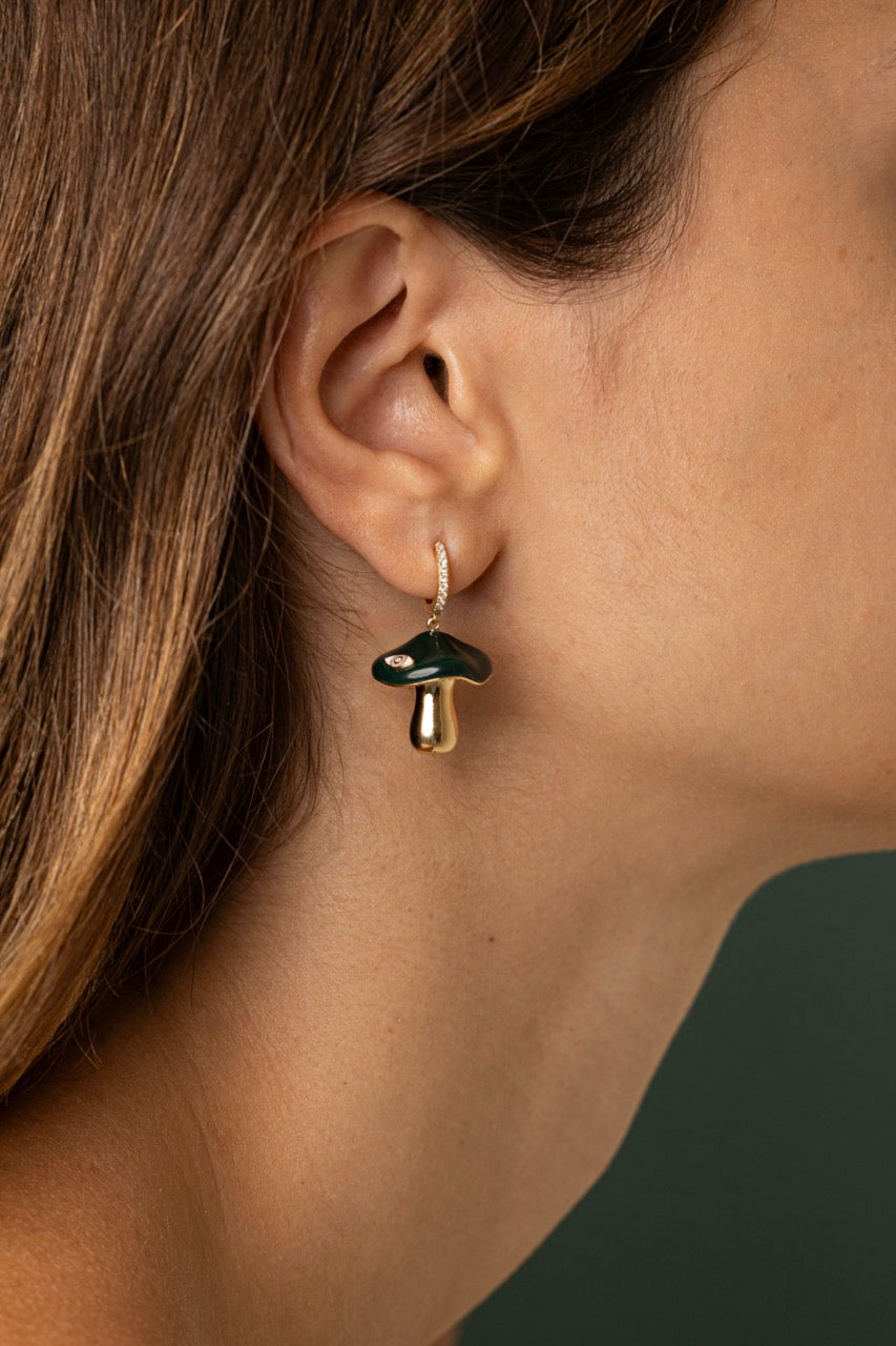 Enchanted Gold & Diamond Green Mushroom Hoop